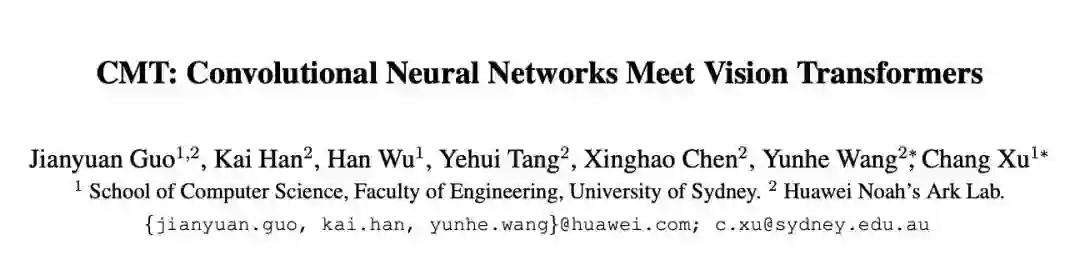 PyTorch代码:https://github.com/huawei-noah/Efficient-AI-Backbones/tree/master/cmt_pytorch