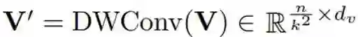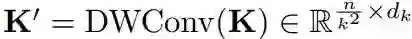 这个过程往往会由于输入特征尺寸较大,而耗费大量的计算资源(显存),给网络的训练和部署带来难度。我们利用两个kxk的深度分离卷积分别对Key和Value的生成进行降采样处理,获得两个相对较小的特征K’和V’: