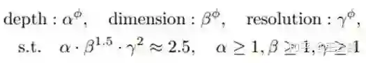 类似EfficientNet的放缩模型的规则,我们针对CMT用亿点点grid search搜索了最佳的放缩系数,α=1.2, β=1.3, and γ=1.15,放缩公式如下: