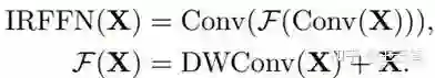 该部分的前馈网络相比传统transformer的FFN,在两层全连接层之间加入了深度可分离卷积层,其中的设计类似MobileNetV2中的inverted residual block: