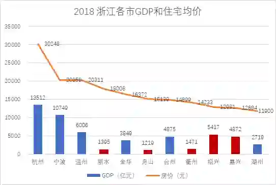 而GDP排名相对靠前的绍兴、嘉兴,明明经济体量都四五千亿元了,均价却刚刚破万,排名浙江省倒数前三。