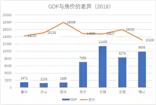 衢州、丽水、舟山这三个城市,GDP只有1200亿-1500亿元,包揽了浙江省的倒数前三名,但是这里的均价却跨过1.5万的大关,几乎要奔着两万去。