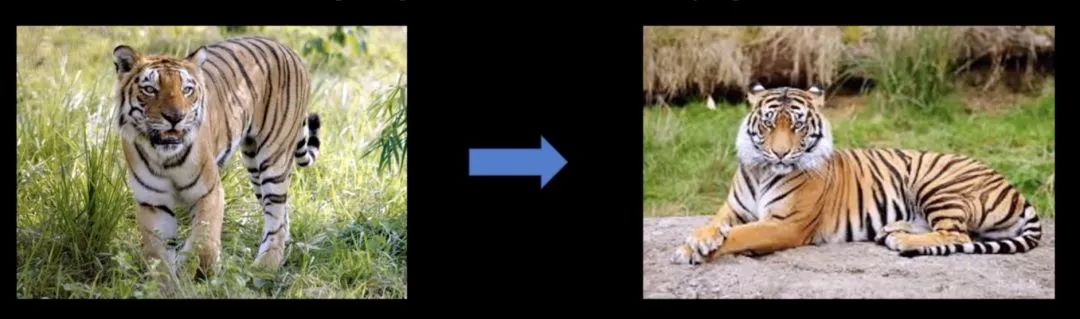 我们看到一只站着的老虎时,自然很容易就能想象出它躺着的样子,这就是图像到图像的转换,即将一个场景的可能表示转换成另一个场景。然而我们能够想像出来是因为我们拥有联想的能力,可以根据其他动物平躺的姿势想像出老虎平躺的样子,然而对于机器来说就不那么简单了。