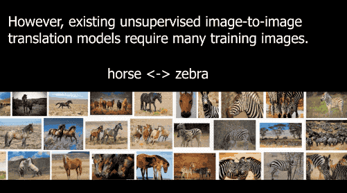 现有的基于无监督学习方法的图像到图像转换模型,依赖于大量的训练数据,并且模型转换的对象必须是训练数据中已有的对象类型,达不到想像创造的能力。2019年5月,NVIDIA研究院提出了一种基于少量样本的无监督学习图像到图像转换模型,仅通过少量样本的训练,即可实现图像到图像的转换,并且可以生成训练数据中不存在的类别,达到"一图生万物"的效果。