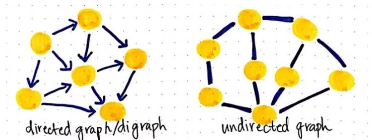 首先我们会探讨一下很容易辨认和理解的两种图:有向图(directed graphs)和无向图(undirected graphs)。这两种图在图论(graph theory)探讨的问题中十分常见。