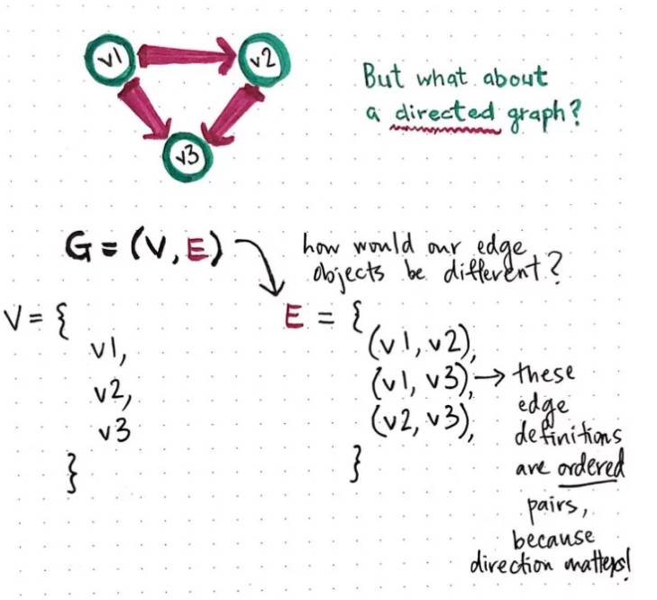 当然,无向图的「无序」这一特性可能会引起一些疑惑,但有向图又有什么性质呢?下面是另一个案例,该图是由三个结点和三条有向边组成的有向图。