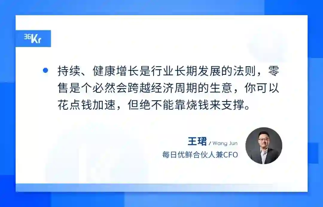王珺:一个小理解是,生鲜零售可能还不像纯互联网平台有非常强的winner takes all的效应,因为没有玩家能把生鲜线上零售的供给侧能力在短期内全部重构,这是不可能的。大家都有供给侧的瓶颈,只会存在一批龙头玩家,长期寡头竞争,一定要有持续和健康的UE模型。持续、健康增长是行业长期发展的法则,零售是个必然会跨越经济周期的生意,你可以花点钱加速,但绝不能靠烧钱来支撑。