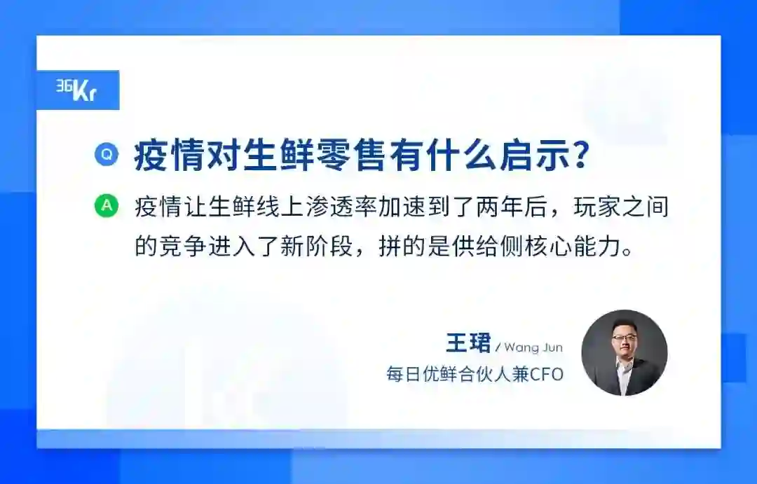 王珺:我们把疫情分为前后两段。在第一个阶段,疫情确实为生鲜到家行业提供了一定的发展机会。但在需求侧井喷的同时又暴露出了整个行业供给侧能力被挑战的问题,尤其是供应链和连锁管理自动化积累比较弱的玩家,会出现比较大的挑战。