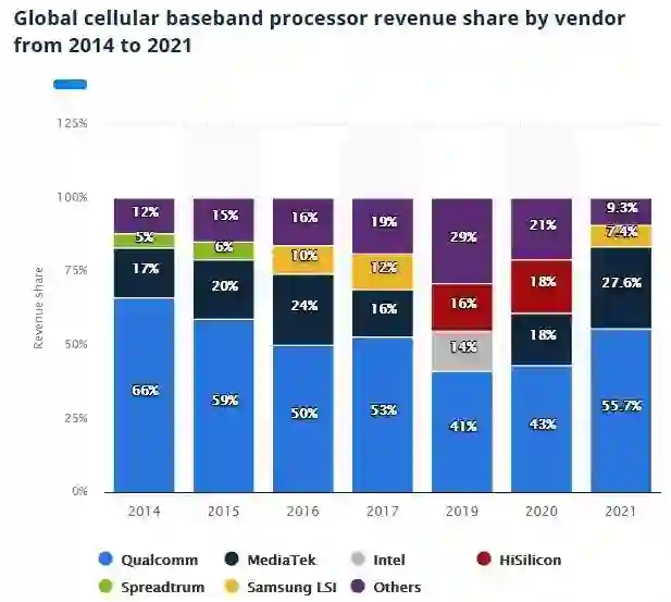 2021 年 11 月,高通预测在 2023 年只会供应 20%的苹果调制解调器(modem)芯片,不再是一家制霸。这暗示着,苹果有信心在 2023 年做出自研的 5G modem,减少对高通的依赖。