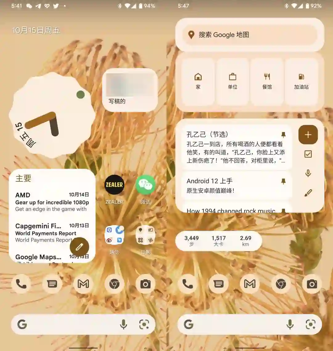 如果小组件对应的 App 没有适配这套主题系统,那么你的主屏幕可能就会是五颜六色。值得一提的是,直到现在,谷歌自己的全家桶小组件都还没完全适配,谷歌要如何让应用开发商适配呢?