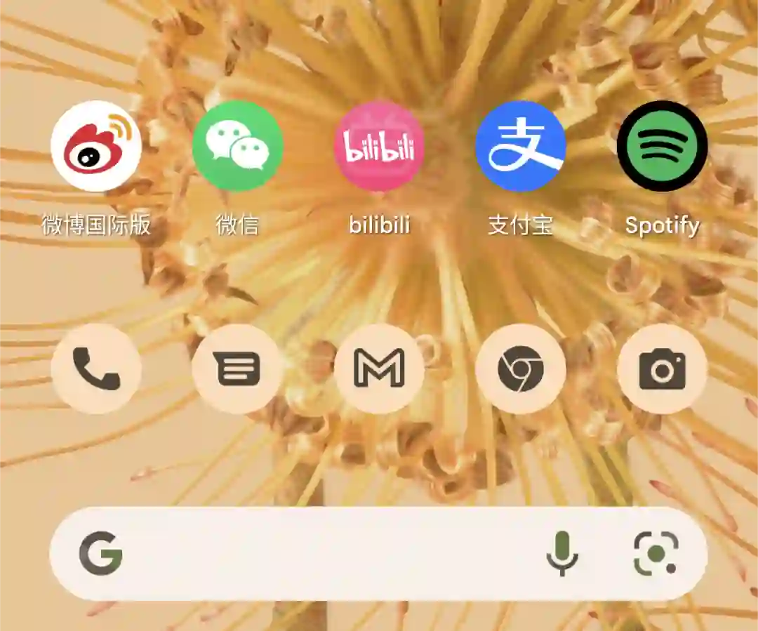 你还可以将这套主题色应用到图标上,就可以获得一套自带图标包。但由于只有谷歌全家桶适配了主题图标,与其他 App 放在一起就形成了鲜明对比,协调性无法保证。