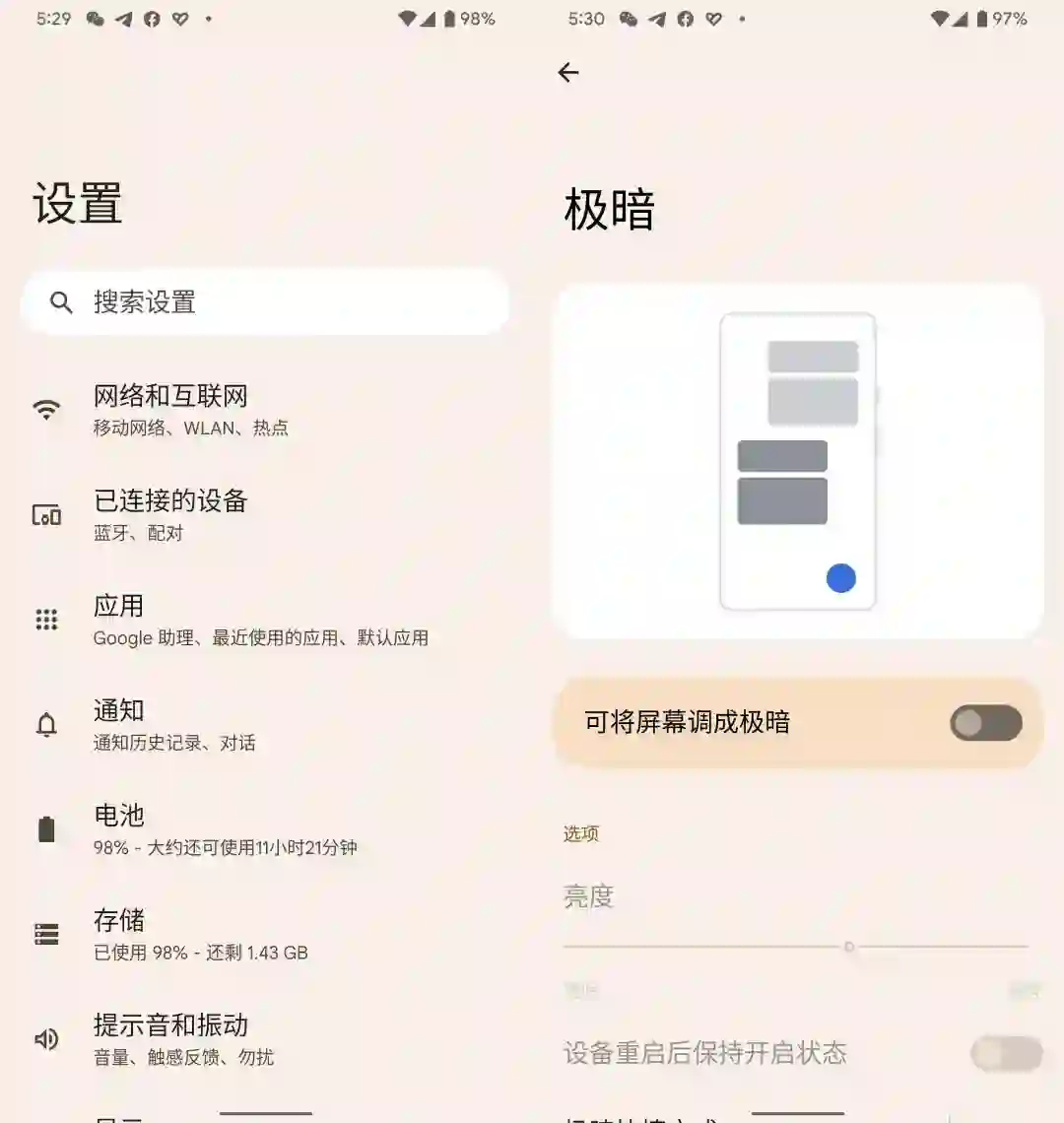 再来看看功能,众所周知,原生安卓系统增加新功能素来偏保守,尤其是比起国内 OEM,动作要慢上不止半拍。别家已经把某个功能玩出花了,谷歌才会不紧不慢地跟进。