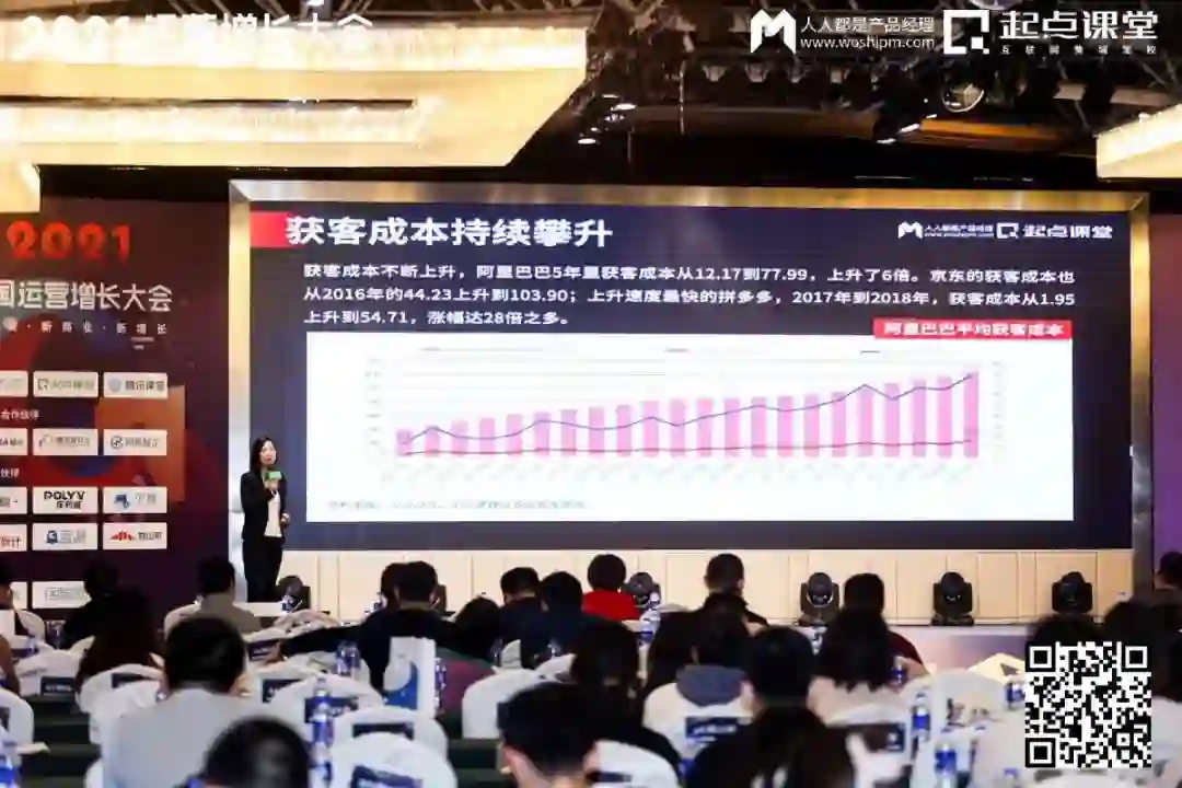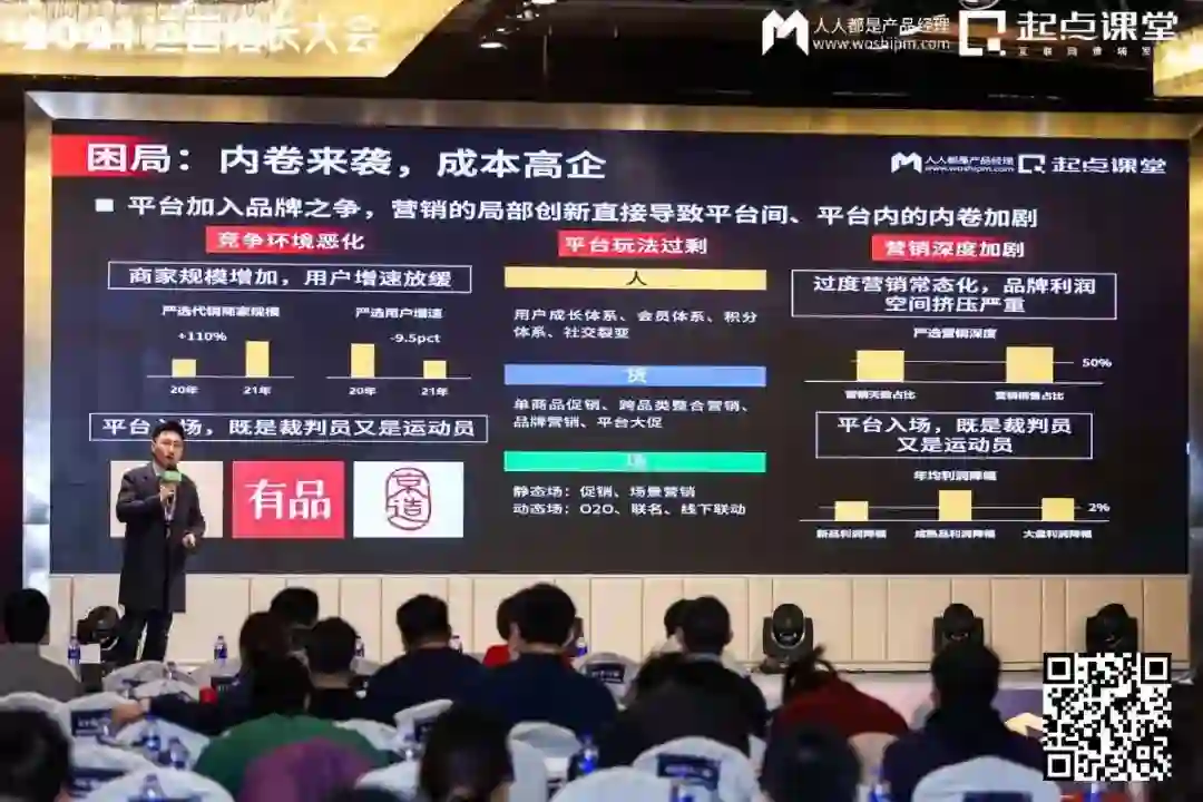 首先,由起点课堂COO@Tony 进行开场致辞。内卷是今年的热词,运营增长领域尤其“卷”,疯狂烧钱来获取用户的方式远没有以前那么管用了,而增长又是悬在每个企业上的达摩克利斯之剑。由此话题展开,今年的运营增长大会也正式拉开了帷幕。