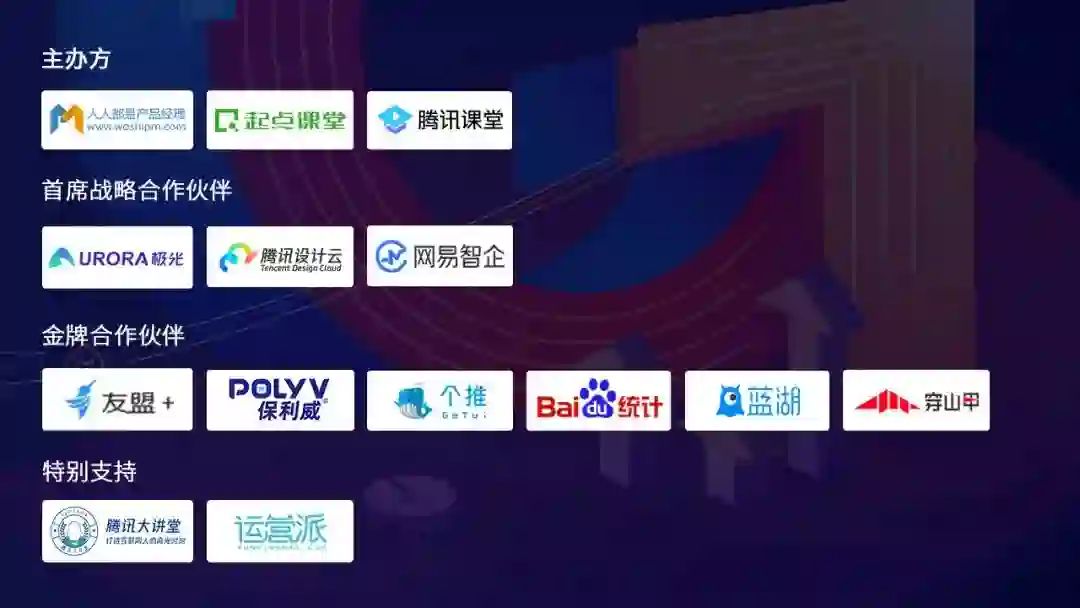 感谢联合主办方腾讯课堂、首席战略合作伙伴极光、腾讯设计云、网易智企的大力支持: