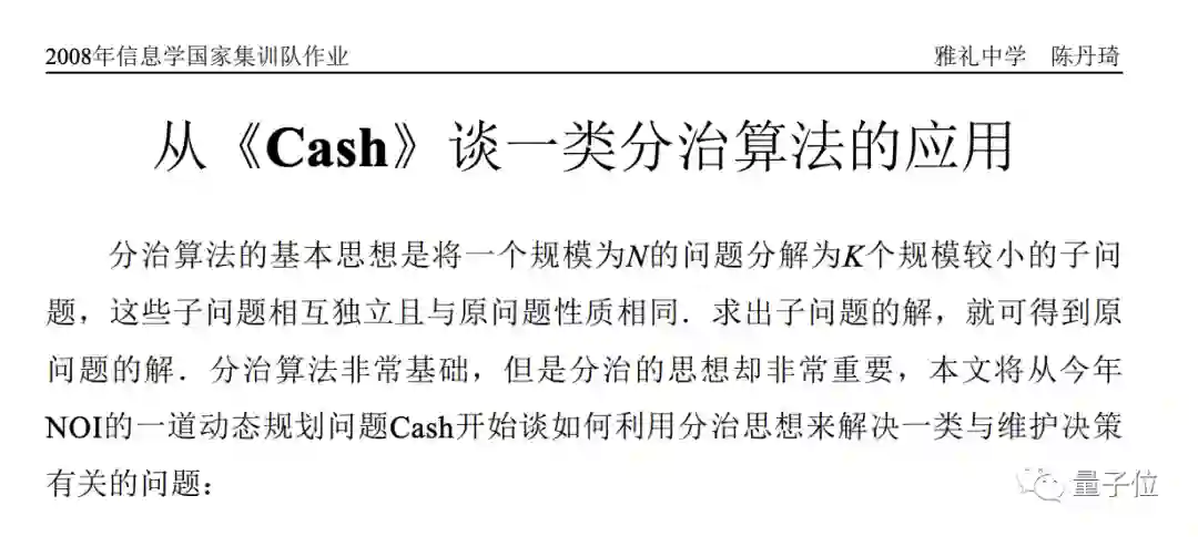 奥赛圈耳熟能详闻的“CDQ分治算法”就是这位学霸在集训期间提出来的,并以她的名字命名。
