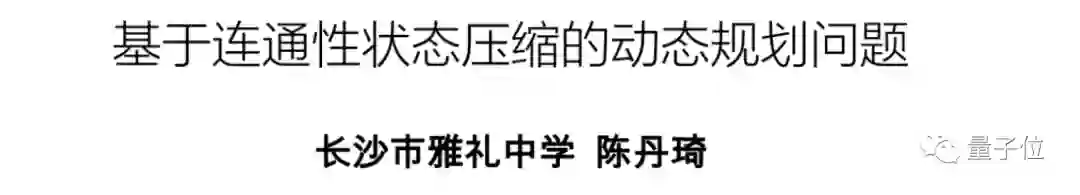 基于这个工具,她还发表了篇论文《基于连通性状态压缩的动态规划问题》。