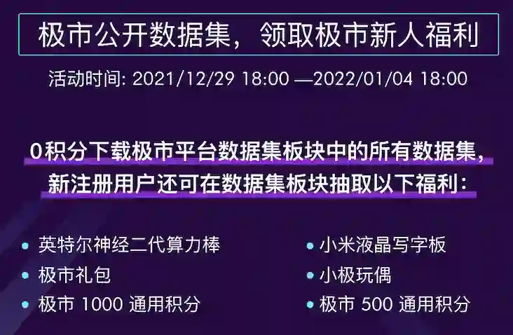 本抽奖活动限12月29日18点后在极市平台注册查看数据集的开发者参与