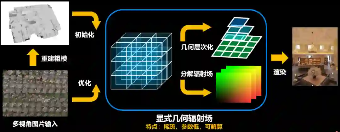 显式辐射场技术,可以帮助重建的环境获取真实的渲染光照效果。