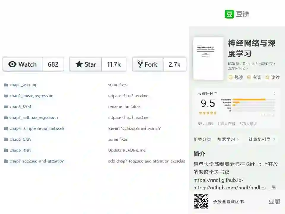 2015年,邱锡鹏教授在网上发布了这本书的电子版讲义,受到广大读者关注。去年春天,邱老师将这本书的初稿内容写完,并开源了电子版,信息一经发布,便引爆了GitHub、知乎等各大学习平台!被广大读者争相学习,豆瓣达到9.5分的超高分!