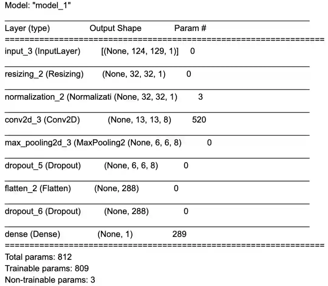 从音频信号中提取了特征之后,就可以使用 TensorFlow 的 Keras API 创建模型。上文有完整的代码链接。模型由 8 层组成: