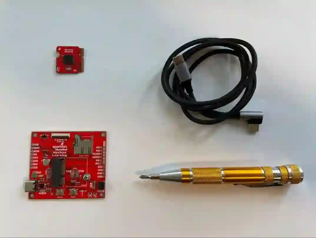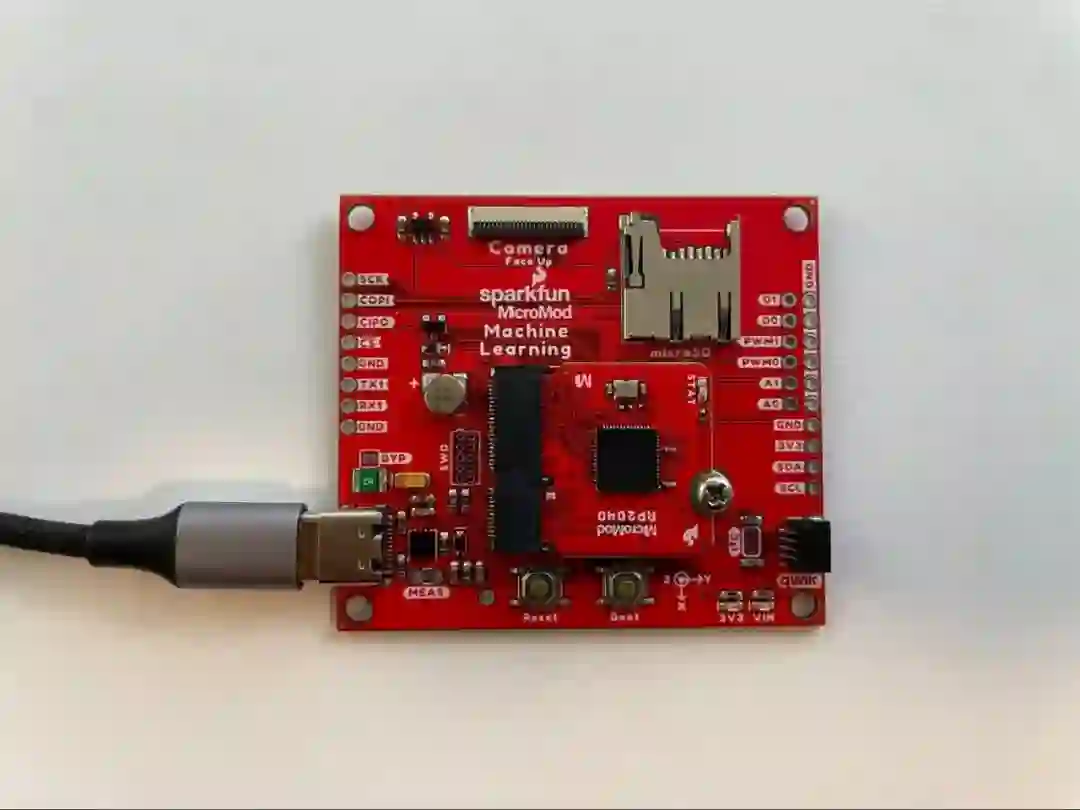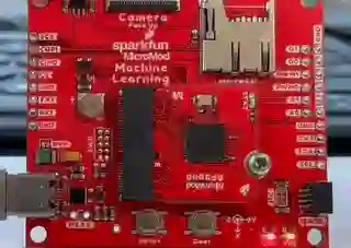 SparkFun MicroMod 机器学习载板。它支持 USB 连接,并附带内置的麦克风、IMU 和摄像头连接器
