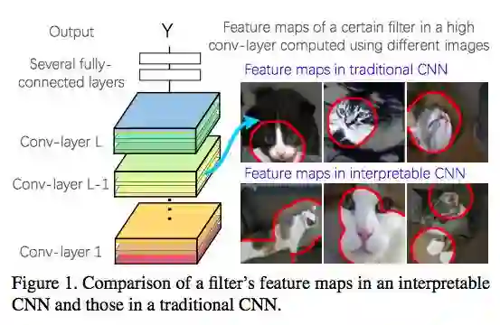 This paper proposes a method to modify traditional convolutional neural networks (CNNs) into interpretable CNNs, in order to clarify knowledge representations in high conv-layers of CNNs. In an interpretable CNN, each filter in a high conv-layer represents a certain object part. We do not need any annotations of object parts or textures to supervise the learning process. Instead, the interpretable CNN automatically assigns each filter in a high conv-layer with an object part during the learning process. Our method can be applied to different types of CNNs with different structures. The clear knowledge representation in an interpretable CNN can help people understand the logics inside a CNN, i.e., based on which patterns the CNN makes the decision. Experiments showed that filters in an interpretable CNN were more semantically meaningful than those in traditional CNNs.