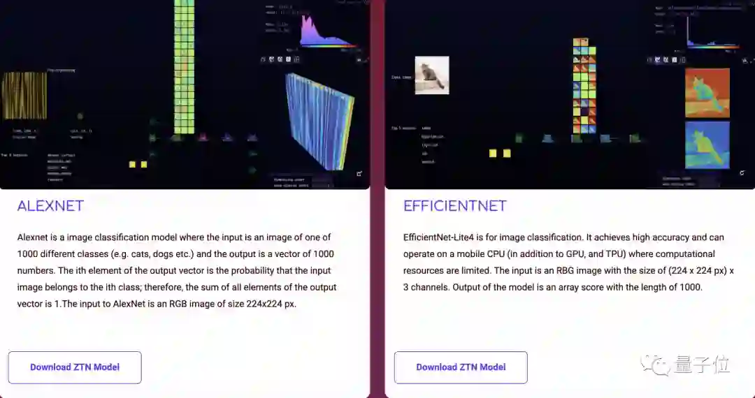 如果手头上还没有模型也没关系,点击界面右上角的Z形图标可以到Zetane Engine的模型库中下载模型: