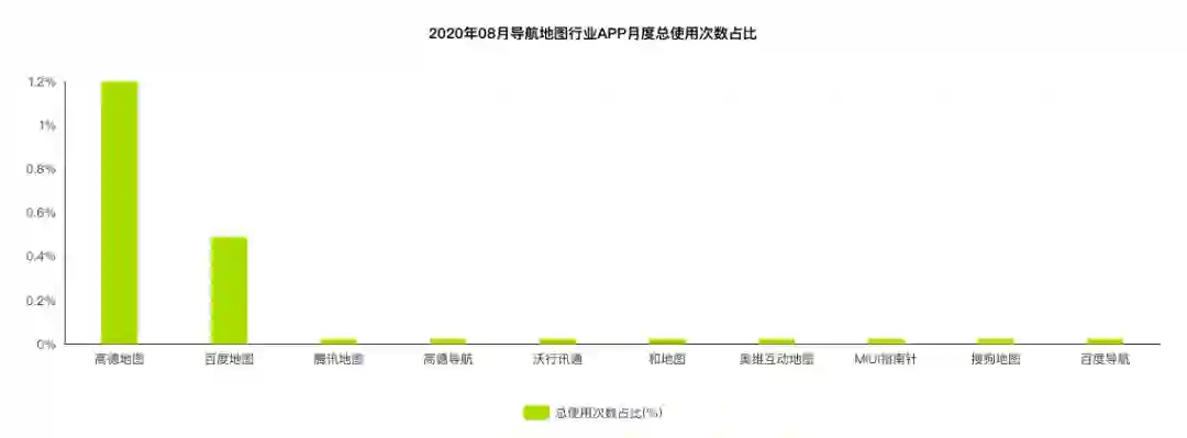 8 月份导航地图行业 App 月度总使用次数占比,来源:艾瑞数据