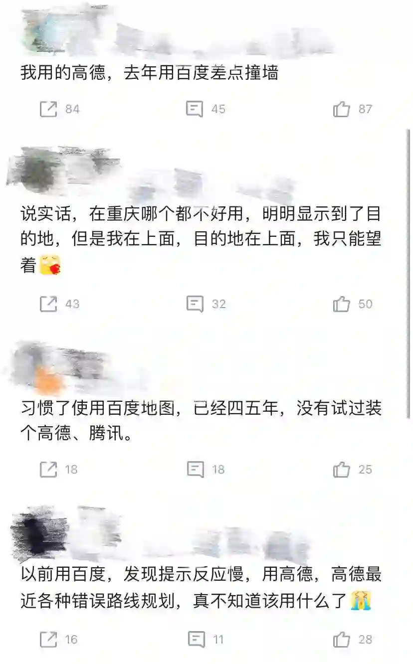 多数情况下,用户对导航软件的信任只有一次。“高德给我导错后,我直接就跟它拜拜了。”一位使用了三年百度地图的用户向 InfoQ 表示,之后他再也没用过高德。而高德地图的一位深度用户表示,多年没换软件的原因是当年有次被百度导错了。