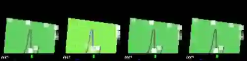 CarRacing 泛化:无修改(左侧);颜色扰动(中间,左侧);左侧和右侧的竖线(中间,右侧);添加了红色斑点(右侧)