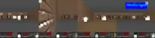 DoomTakeCover 泛化:AttentionAgent 在未经修改的环境中训练(左侧)。它能够适应环境的变化,例如更高的墙(中间,左侧)、不同的地板纹理(中间,右侧)或浮动文本(右侧)