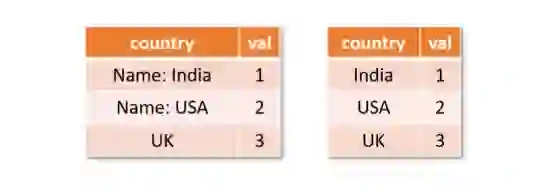 图一:输入数据框与输出数据框。Jigsaw 从名为“country”的列中删除了多余部分“Name:”。