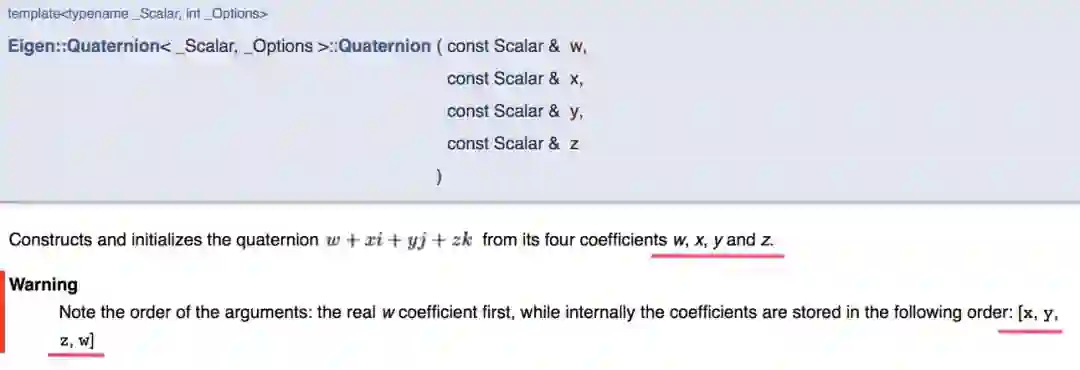 其次,单位四元素才能描述旋转,所以四元素使用前必须归一化:q.normalize()。