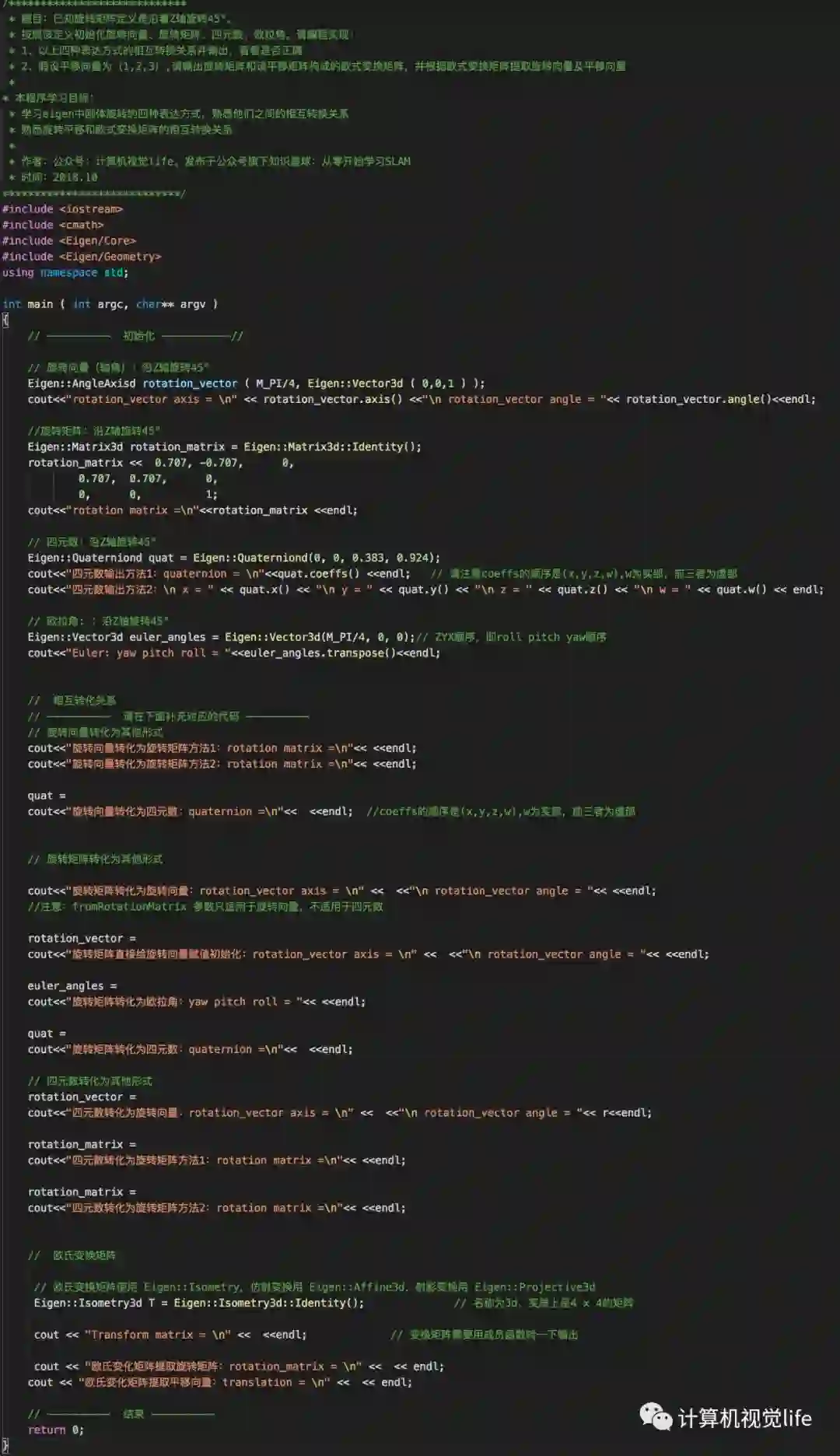 Eigen在SLAM编程中是必备基础,必须熟练编程。关于Eigen,主要有以下几点需要强调或注意。