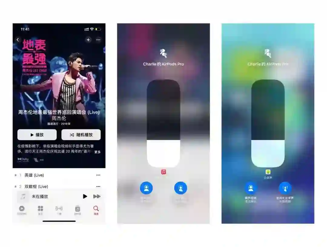 更没想到的是,苹果还在 AirPods Pro 上留了一手 —— 后续升级让它支持了「空间音频」。配合在 iOS 15 下的「空间化立体声」,AirPods Pro 在听音乐和看视频时候有了更立体的空间感和更强的沉浸感。左右摇头就能感觉到声音是有方向的,尤其是播放杜比全景声资源,声音从左右、前后传来,逼真。