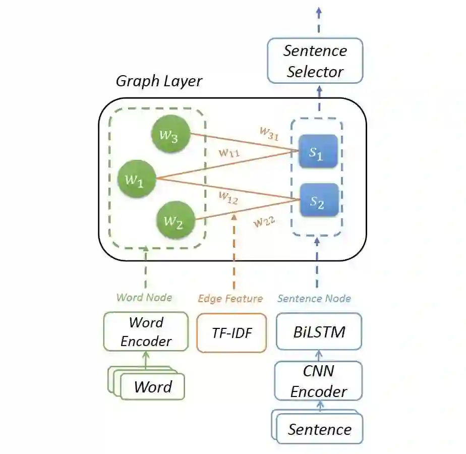 摘要:作为提取文档摘要的关键步骤,跨句关系学习已经有了大量的研究方法。一种直观的方法是将它们放入基于图的神经网络中,该网络具有更复杂的结构来捕获句间关系。本文提出了一种基于图的异构神经网络抽取摘要算法(HeterSUMGraph),该算法除句子外,还包含不同粒度的语义节点。这些额外的结点起到句子之间的中介作用,丰富了句子之间的关系。此外,通过引入文档节点,我们的图结构可以灵活地从单文档设置自然扩展到多文档设置。据我们所知,我们是第一个将不同类型的节点引入到基于图的神经网络中进行提取文档摘要的,我们还进行了全面的定性分析,以考察它们的好处。