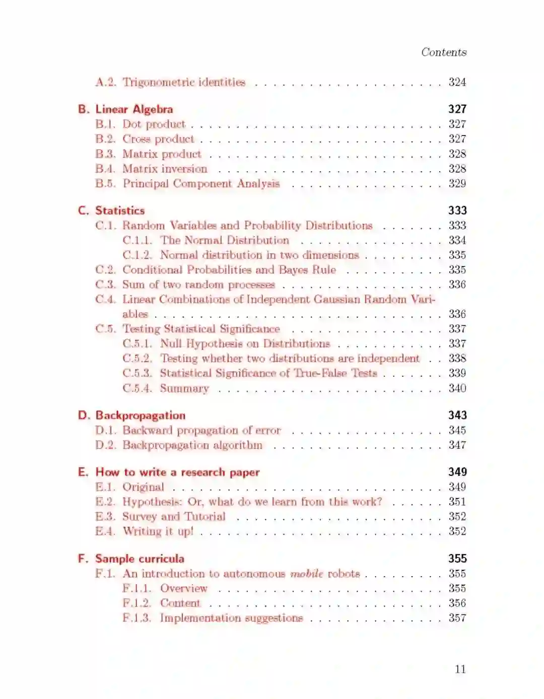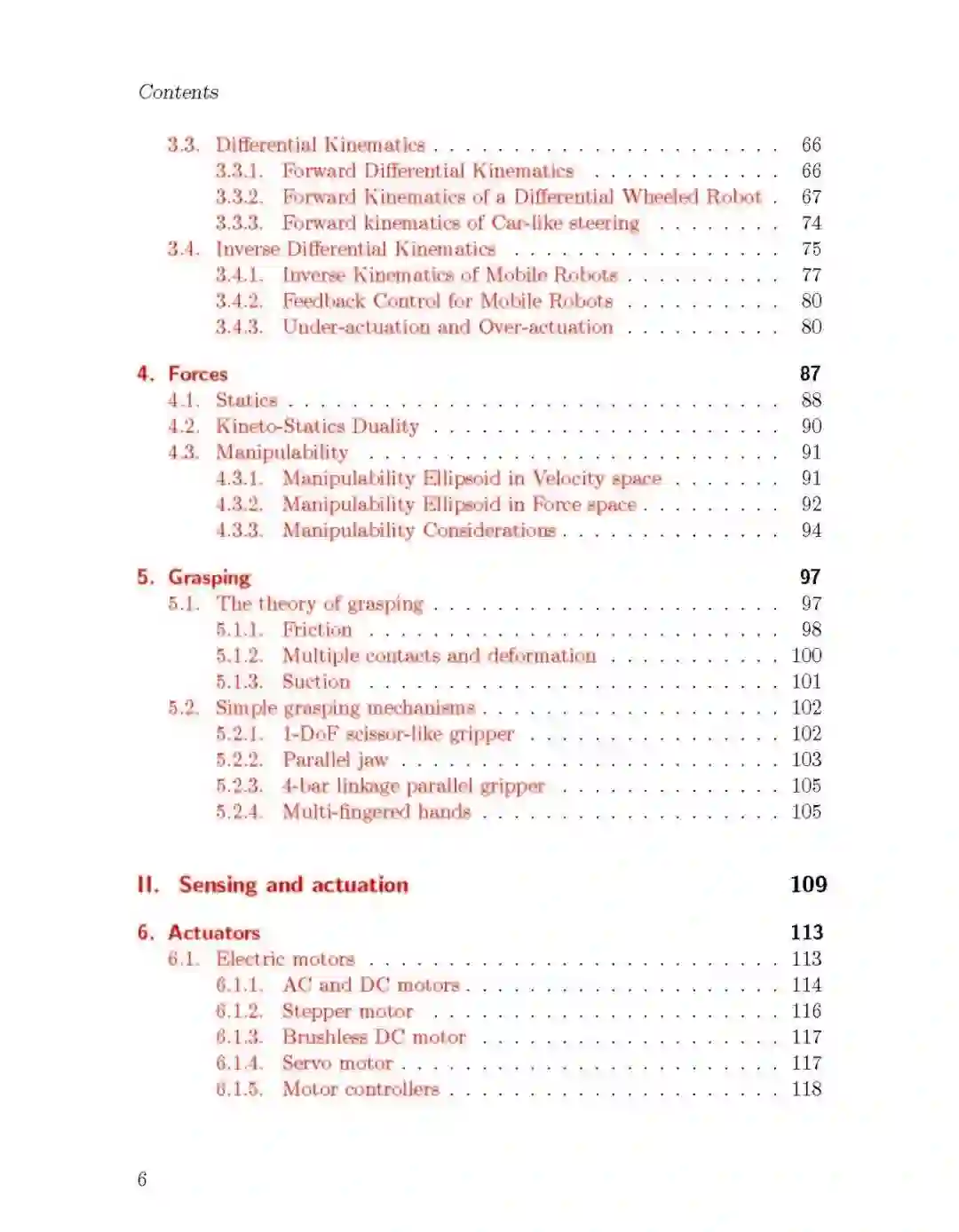 《自主机器人导论》是为工程学和计算机科学专业的本科生编写的,对线性代数、概率论、三角函数和统计学有较深的理解。内容包括机器人机构的基本概念,如运动和抓取,以及产生的力;传感器和执行器的工作原理; 视觉与特征检测的基本算法; 并介绍人工神经网络,包括卷积和循环变体。文本中的二维码引导读者观看在线讲座视频和动画。这本书还提供了广泛的附录,侧重于基于项目的课程,数学的相关领域,反向传播,写一篇研究论文,和其他主题,并伴随着一个开源的,独立于平台的模拟(Webots)中不断增长的练习库。