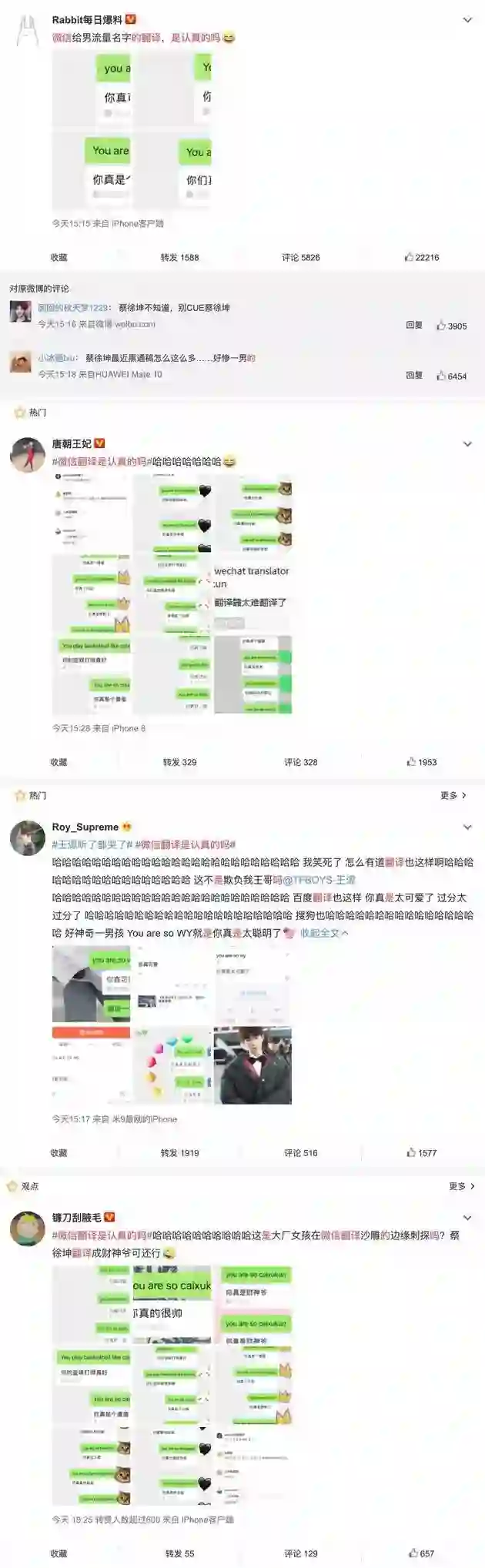 其中一些涉及名人明星等内容,此举引发了网友们纷纷测试自己的名字,并将一些耳熟能详的名字代入句子翻译。
