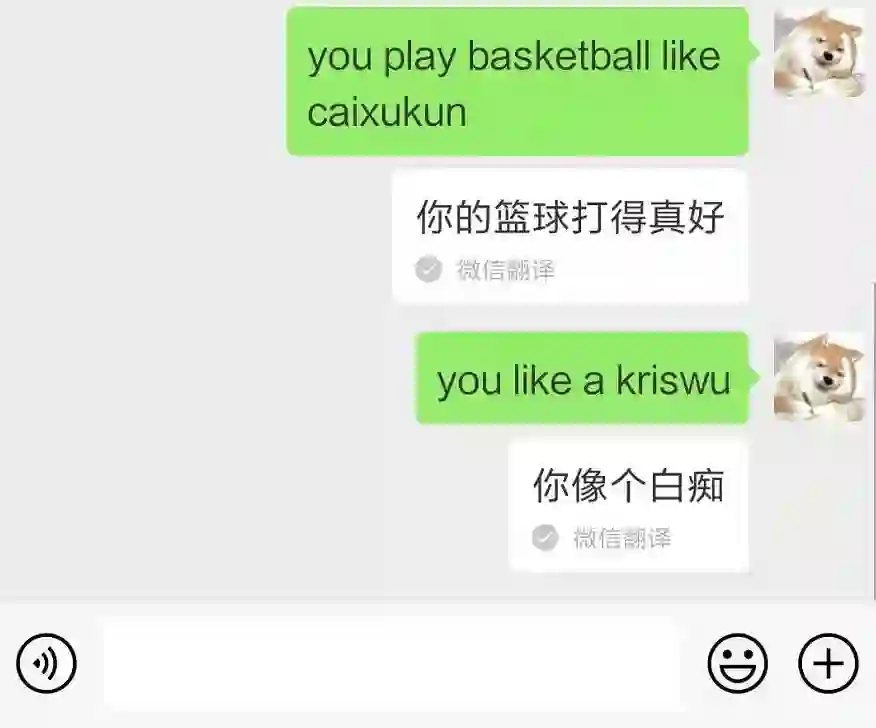 在微信当中,经常会被网友意外发现隐藏着的不少有意思的彩蛋,可以用来实现不少闲来无事时觉得好玩的功能。最近有不少微博网友表示,微信聊天中外语翻译功能被挖出了不少彩蛋,通过特殊句式+人名拼音可以在微信上翻译出让人哭笑不得的的结果,例如: