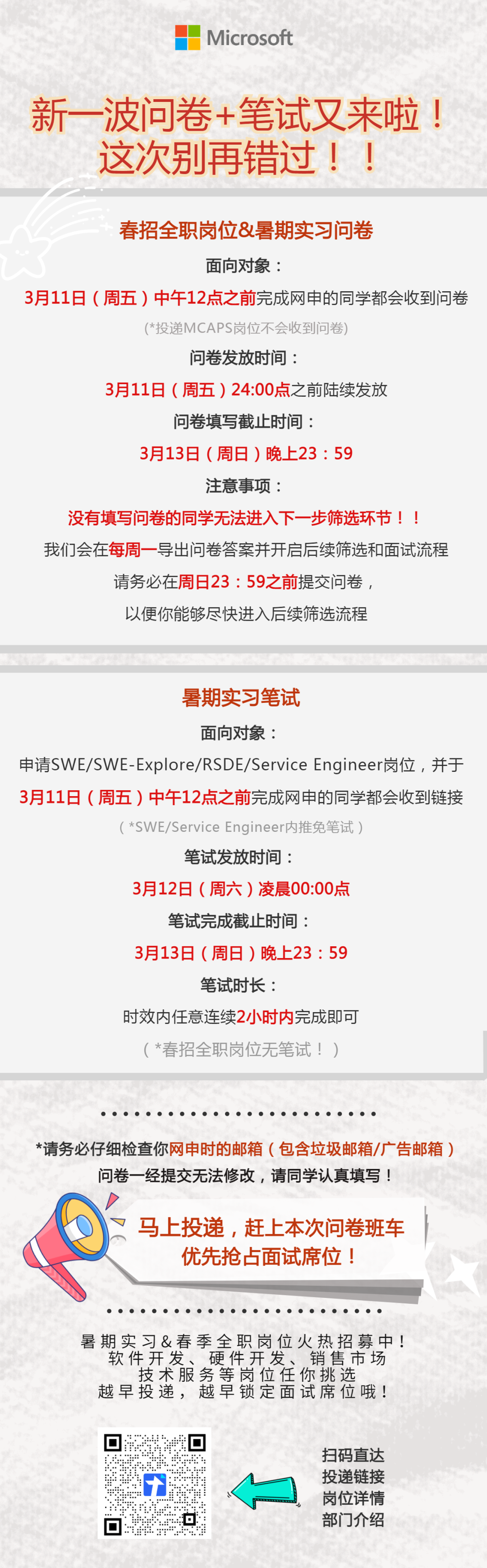 校招 | 暑期实习申请明日截止!最后一波问卷&笔试在路上了!
