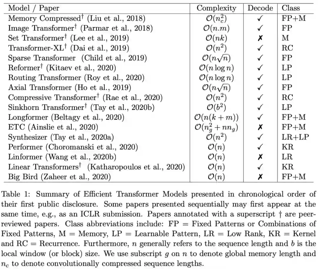 表 1:按发布时间顺序整理的高效 Transformer 模型。