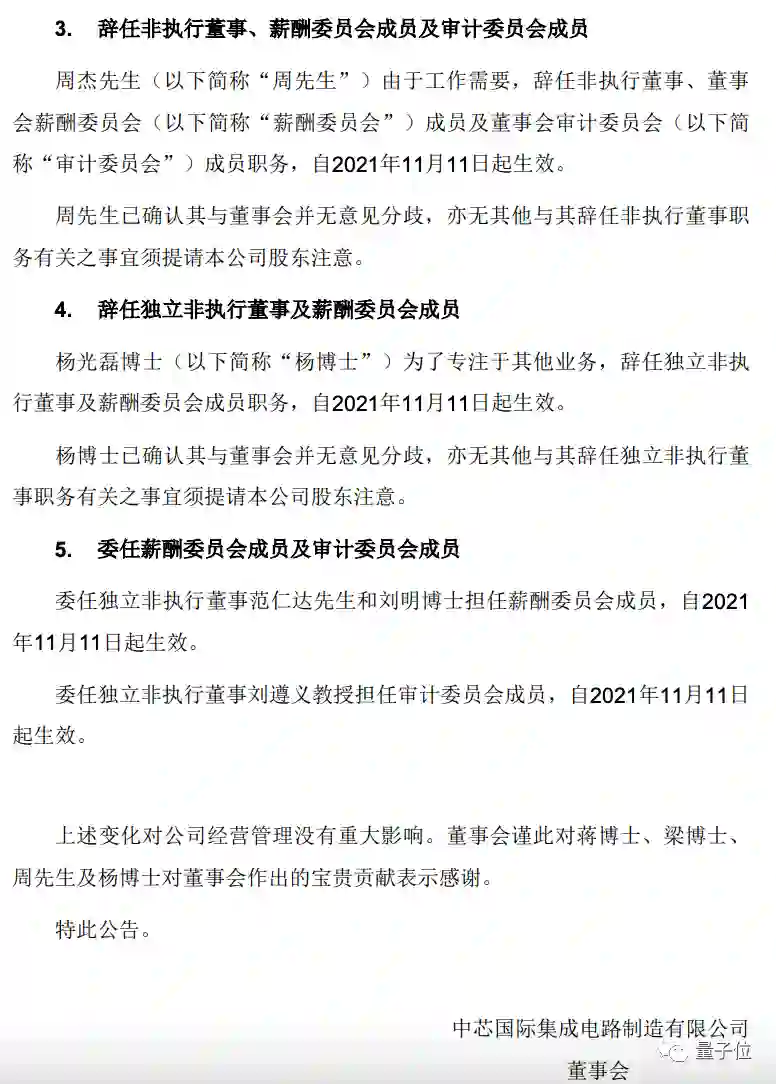 而中芯国际的这份公告中,他的名字也赫然在列: