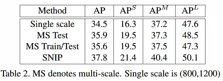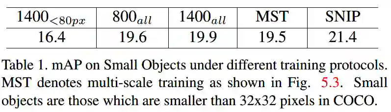 作者又尝试训练具有尺度不变特性的检测器。随机采样图像,用不同分辨率的图像进行训练(Multi-Scale Training, MST)。然而效果也不太好,原因是随机采样,会出现极大极小的样本,影响训练效果。