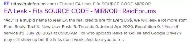 在地下论坛帖子中,一位用户写道:「针对游戏巨头EA的黑客攻击,要归功于Lapsus$,更多的内容会被泄露。」