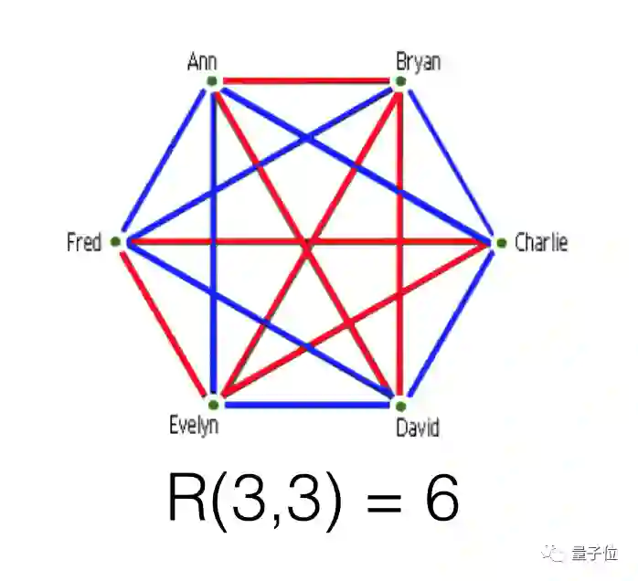 也就是说,R(3,3)=6,这里的6就是拉姆齐数。