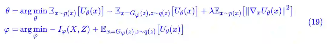 现在我们要最小化 −Iφ(X,Z) ,也就是最大化互信息 Iφ(X,Z)。直观上这也不难理解,因为这一项是用来防止 mode callopse 的,而如果一旦 mode callopse,那么几乎任意的 z 都生成同一个 x,X,Z 的互信息一定不会大。