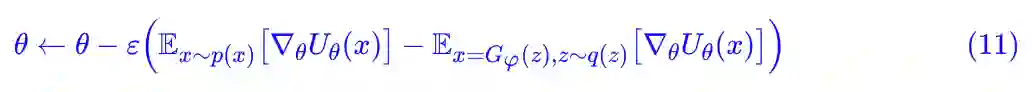 1. 推导了能量分布下的正负相对抗的更新公式;