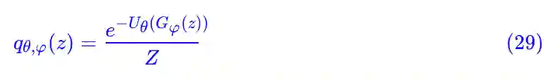 一个有趣的转化是:我们可以不直接考虑 x 的 MCMC 采样,而考虑 z 的采样。因为在前面的模型中,我们最后既得到了能量函数 Uθ(x),也得到了生成模型 Gφ(z),这意味着 z 的能量函数为: