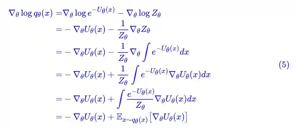 事实上,式 (6) 和式 (7) 表明我们开始假设的能量分布模型的理论分析并不困难,但是落实到实验中,我们发现必须要完成从 qθ 中采样:。也就是说,给定一个具体的