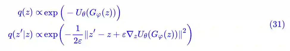 如果我们相信我们的模型,相信能量函数 Uθ(x) 和生成模型 Gφ(z) 都是有价值的,那么我们有理由相信会是一个比标准正态分布更好的 z 的分布(能生成更真实的 x 的 z 的分布,因为它将 Gφ(z) 也纳入了分布的定义中),所以从